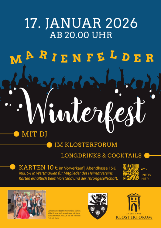 Das Winterfest findet am Samstag, 17. Januar 2026 im Klosterforum statt. Der Kartenvorverkauf beginnt am 1. Dezember 2025.